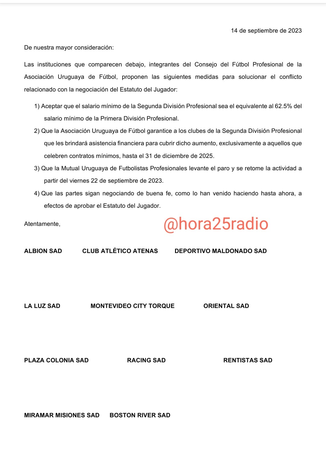 Tras hacerse público el descontento por los bajos sueldos que perciben los futbolistas de segunda división, $20.000 pesos uruguayos mensuales, y el reclamo por un aumento de más del 50%.